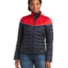 The Ariat Ideal 3.0 Team Down Jacket for women is sporty, stylish, and practical for winter riding. The wind-resistant, water-resistant jacket has lightweight down insulation to keep you warm without weighing feeling heavy. Striking colorblock design in Team Color navy and red with white trim is a classic look for equestrian sport.